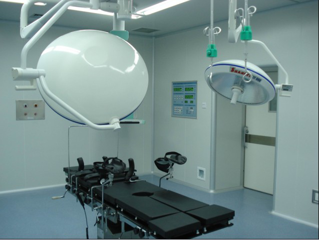 凈化車間面積約為10800平方米,凈化要求為百級,千級和萬級,I級手術(shù)室2個,II級手術(shù)室3個,III級手術(shù)室2個,III級手術(shù)室2個,ICU十萬級約1500平方米,空調(diào)系統(tǒng)方案采用冷水機(jī)組+潔凈空氣處理機(jī)組AHU+高效風(fēng)口處理方式,工程內(nèi)容含彩鋼板結(jié)構(gòu)裝修,潔凈空調(diào)系統(tǒng),工藝排風(fēng),高架地板,PVC地板及環(huán)氧樹脂地板,LED照明系統(tǒng),空調(diào)配電及自控系統(tǒng),設(shè)計要求:溫度21±2℃,濕度55±10%,完工后各標(biāo)無塵室指標(biāo)均達(dá)到要求;完工后圖片如下: